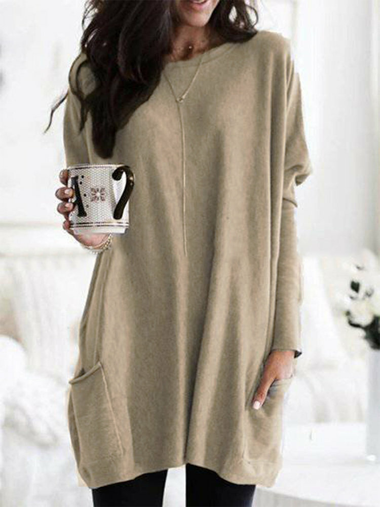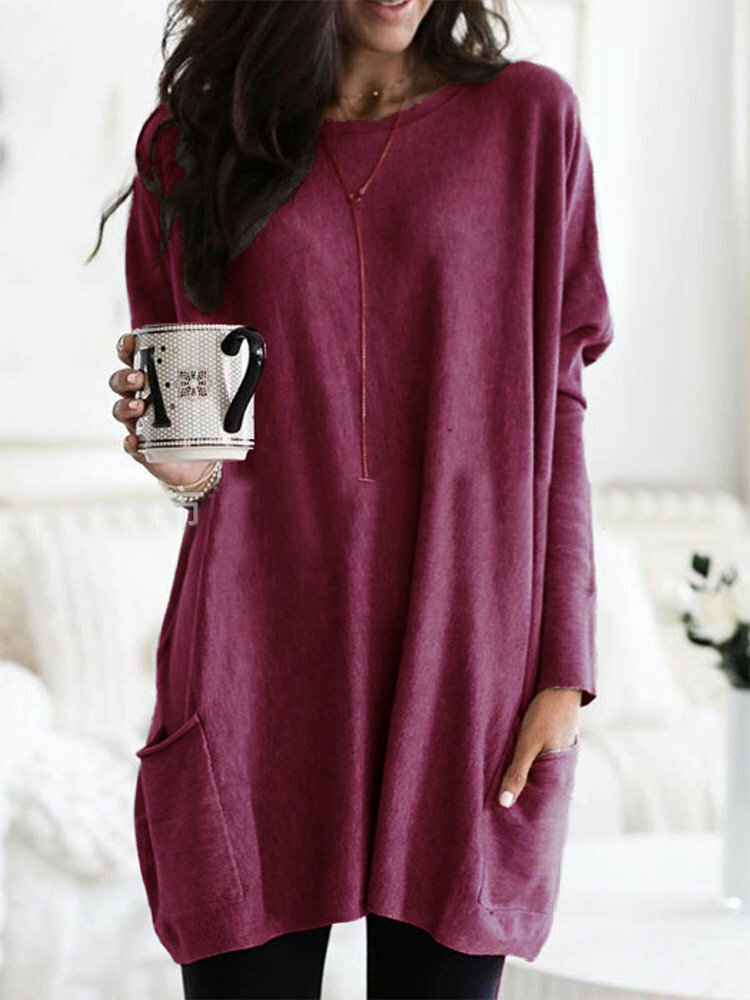 • Casual Pure Color Double Pockets Loose Shirts For Women