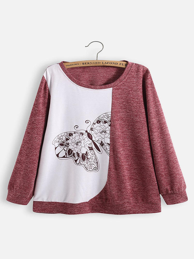 Causal Patchwork Butterfly Print Long Sleeved Shirts