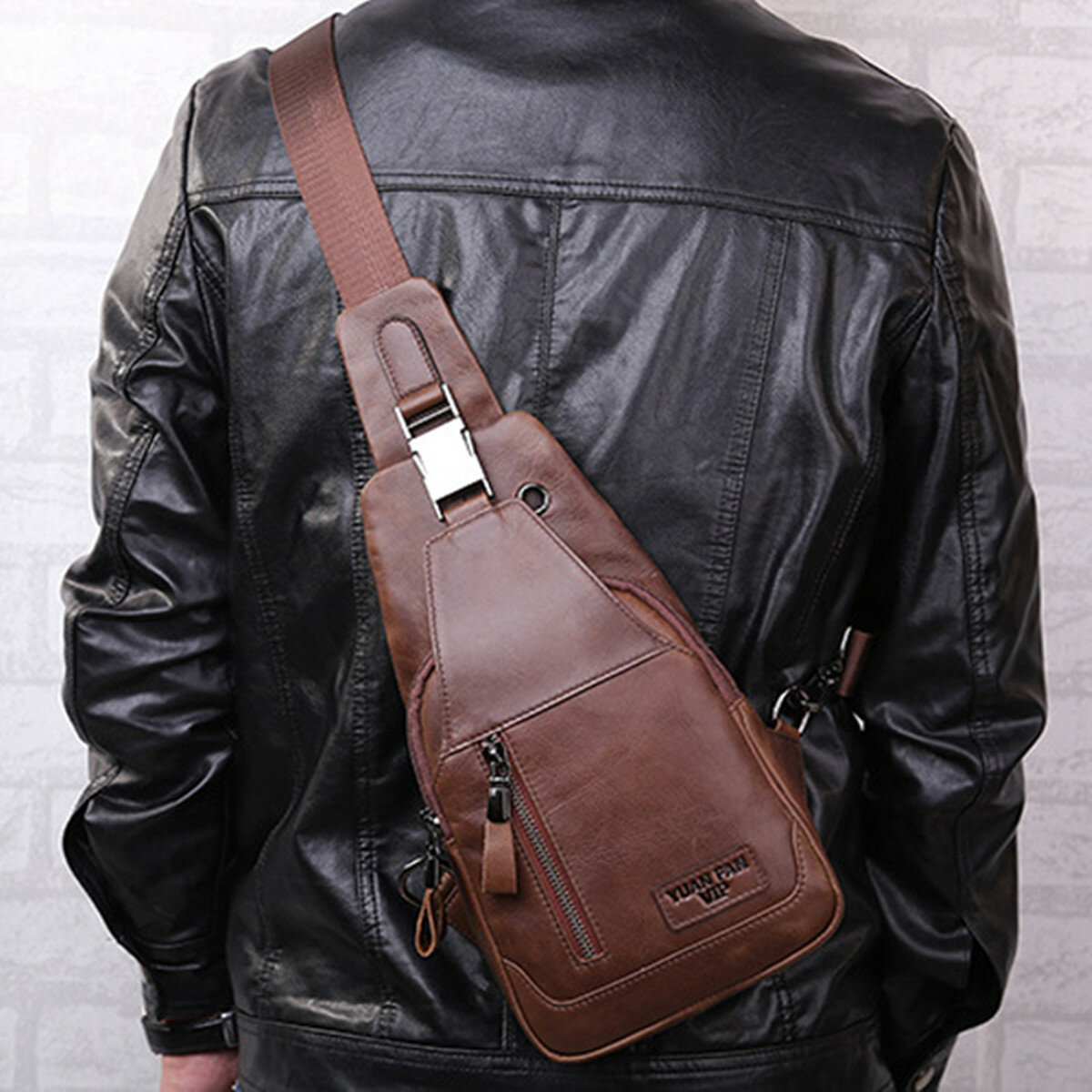 • Ekphero® Men Casual Genuine Leather Oil Wax Chest Bag Crossbody Bag