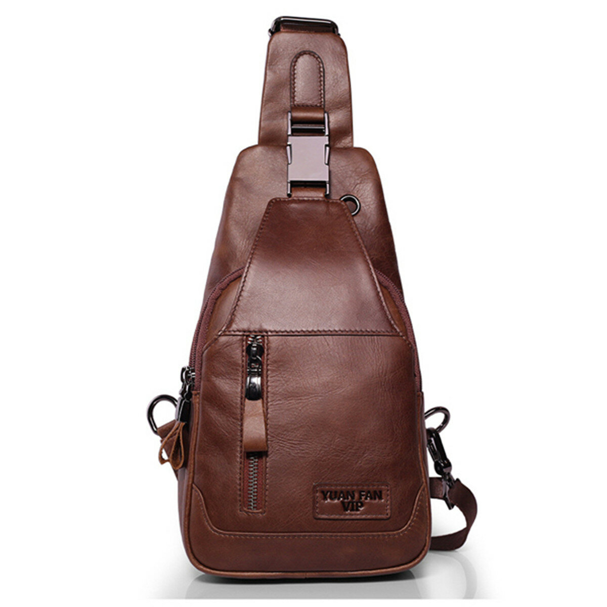 Ekphero® Men Casual Genuine Leather Oil Wax Chest Bag Crossbody Bag COD