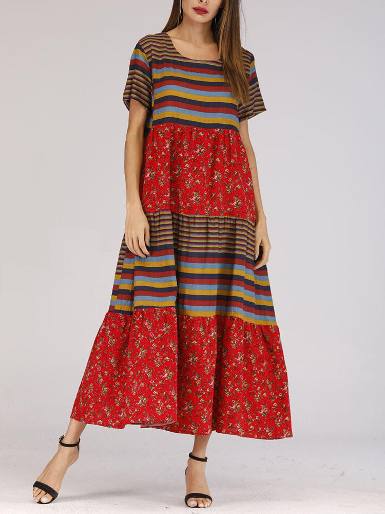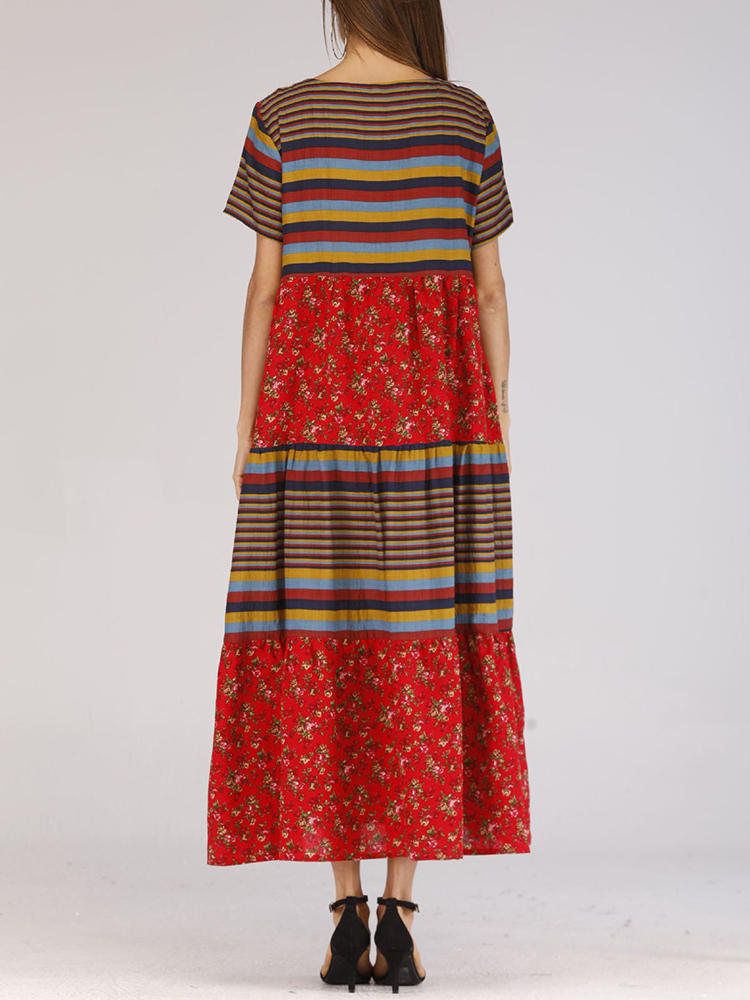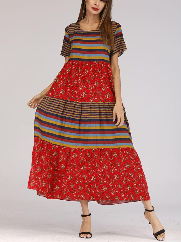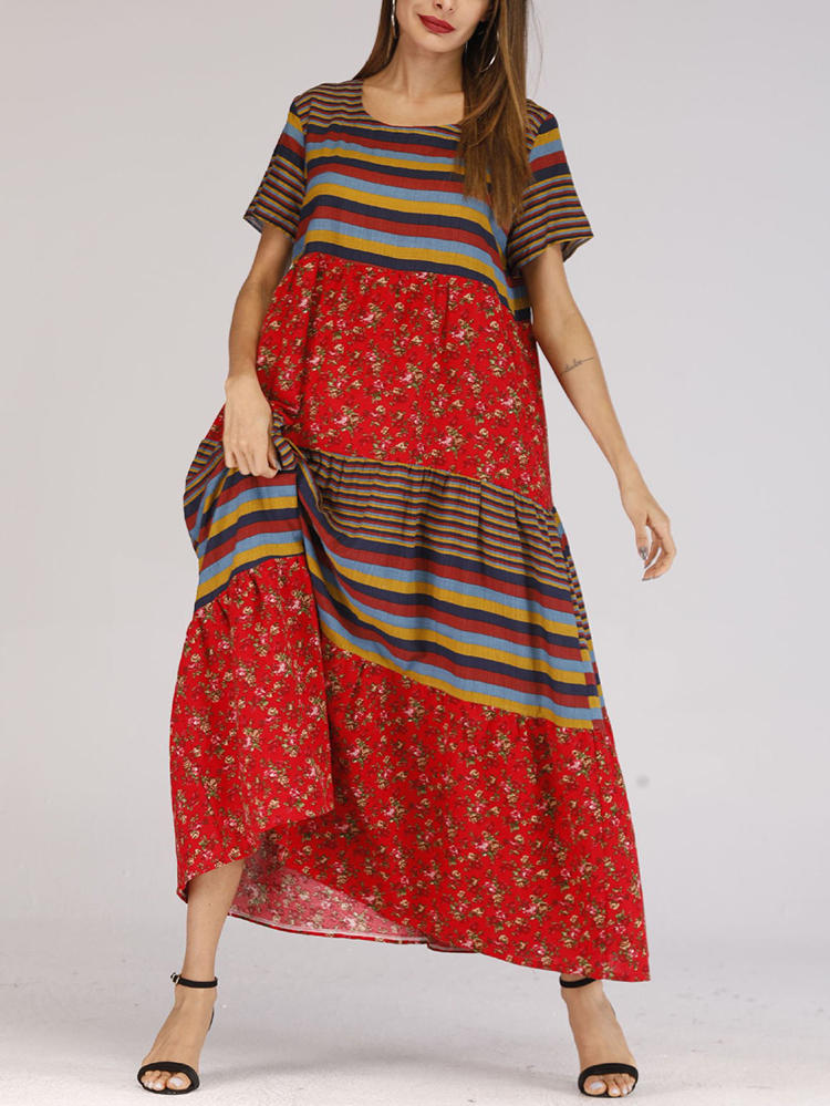 Ethnic Style O-neck Short Sleeve Women Long Dress COD