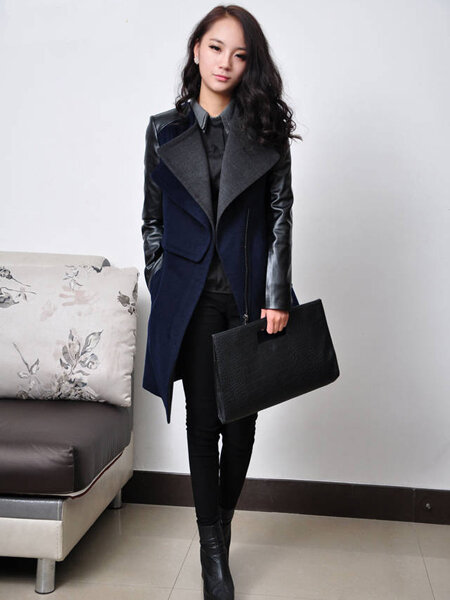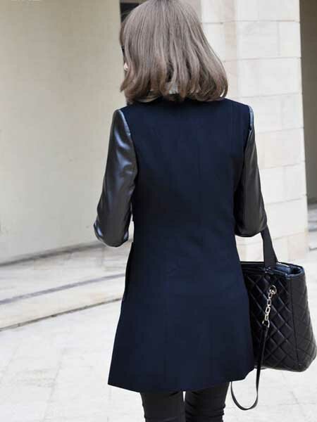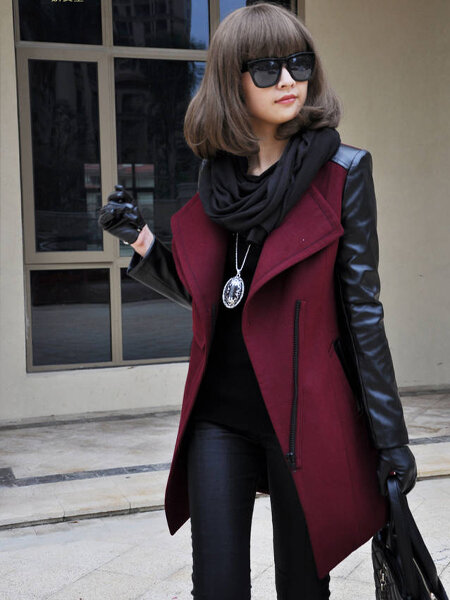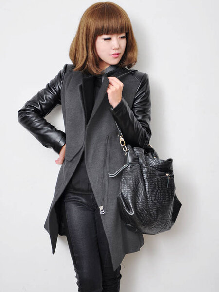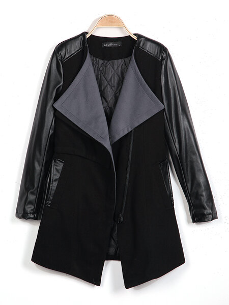 European Zipper Spell Leatheroid Long Sleeve Thick Coats
