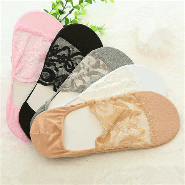 • Fashion Women Lace Antiskid Invisible Boat Socks Summer Breathable Thin Low Cut Hosiery