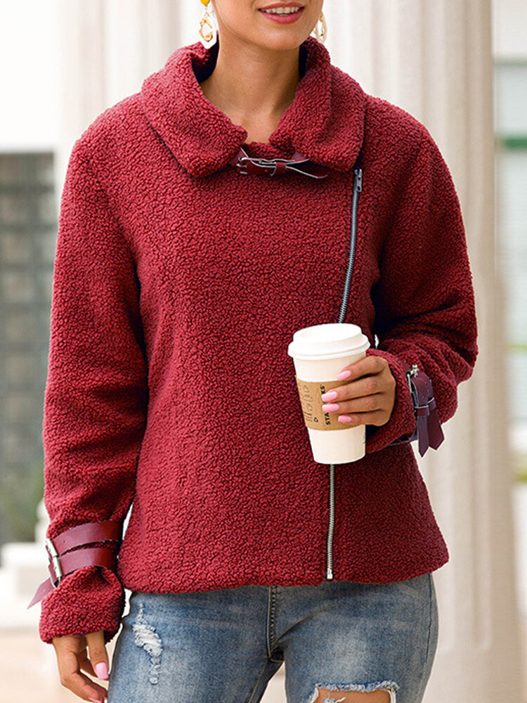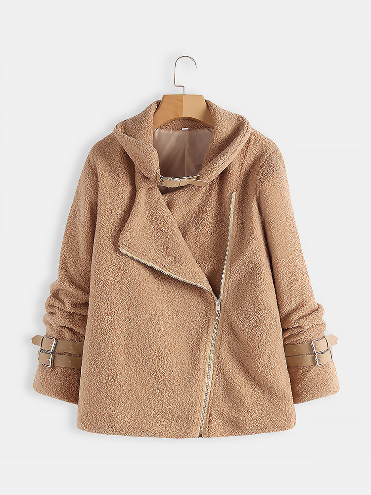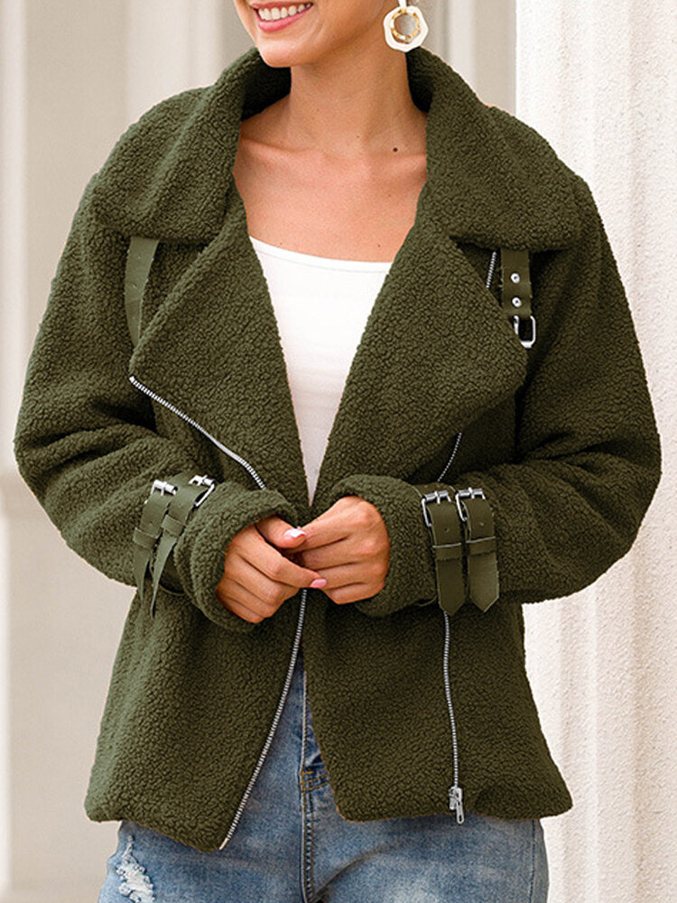Fleece Turn-down Collar Solid Thick Coats COD