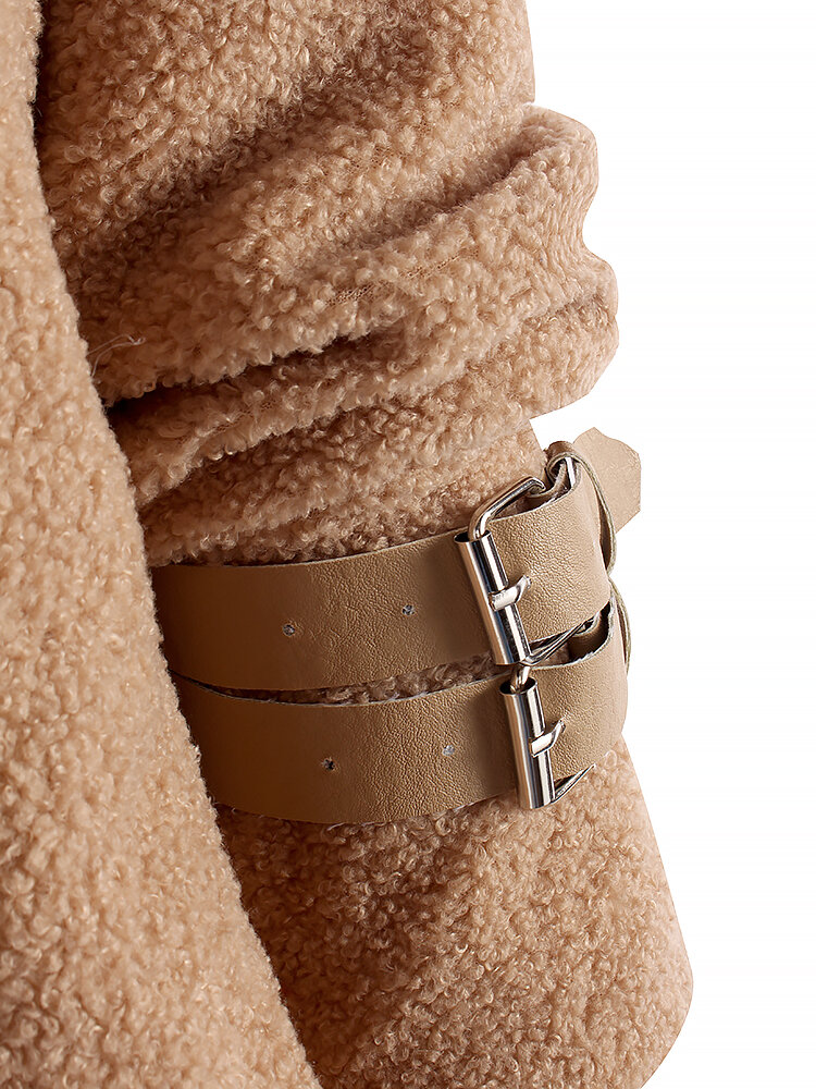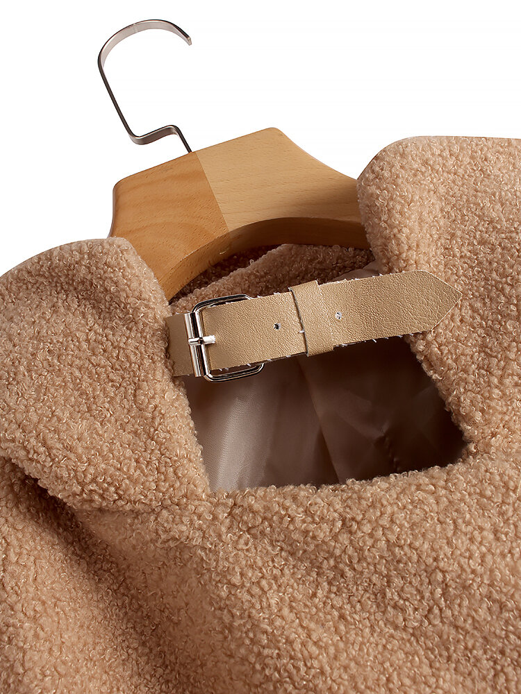 Fleece Turn-down Collar Solid Thick Coats