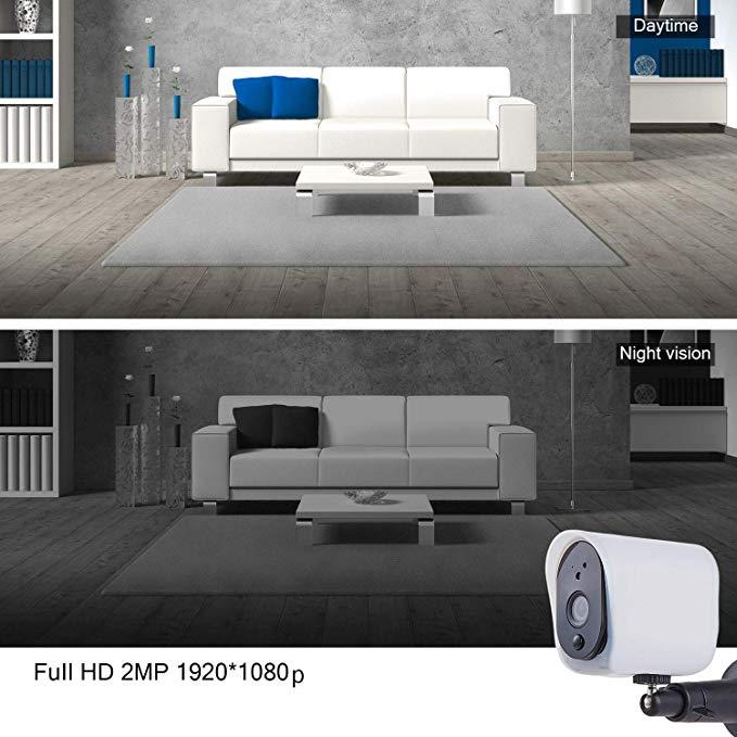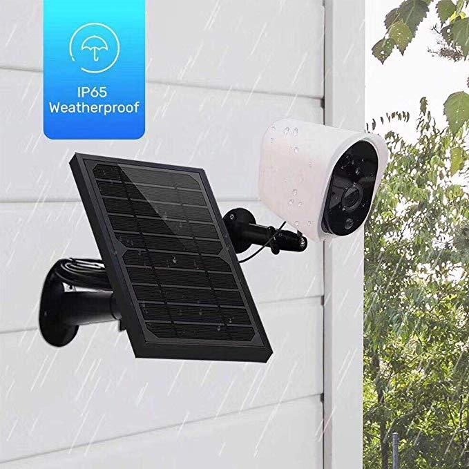Battery Security Camera & Non-stop Power SupplyThe HD 1080P outdoor battery powered security camera built-in 6400mAh P anasonic rechargeable batteries and works stable with 2.4GHz WiFi, make it 100% wire-free wireless camera. Non-Stop solar panel power supply, avoided troubling you to take off the solar powered security camera for recharging if the solar panel get 3 days direct sunlight each month.