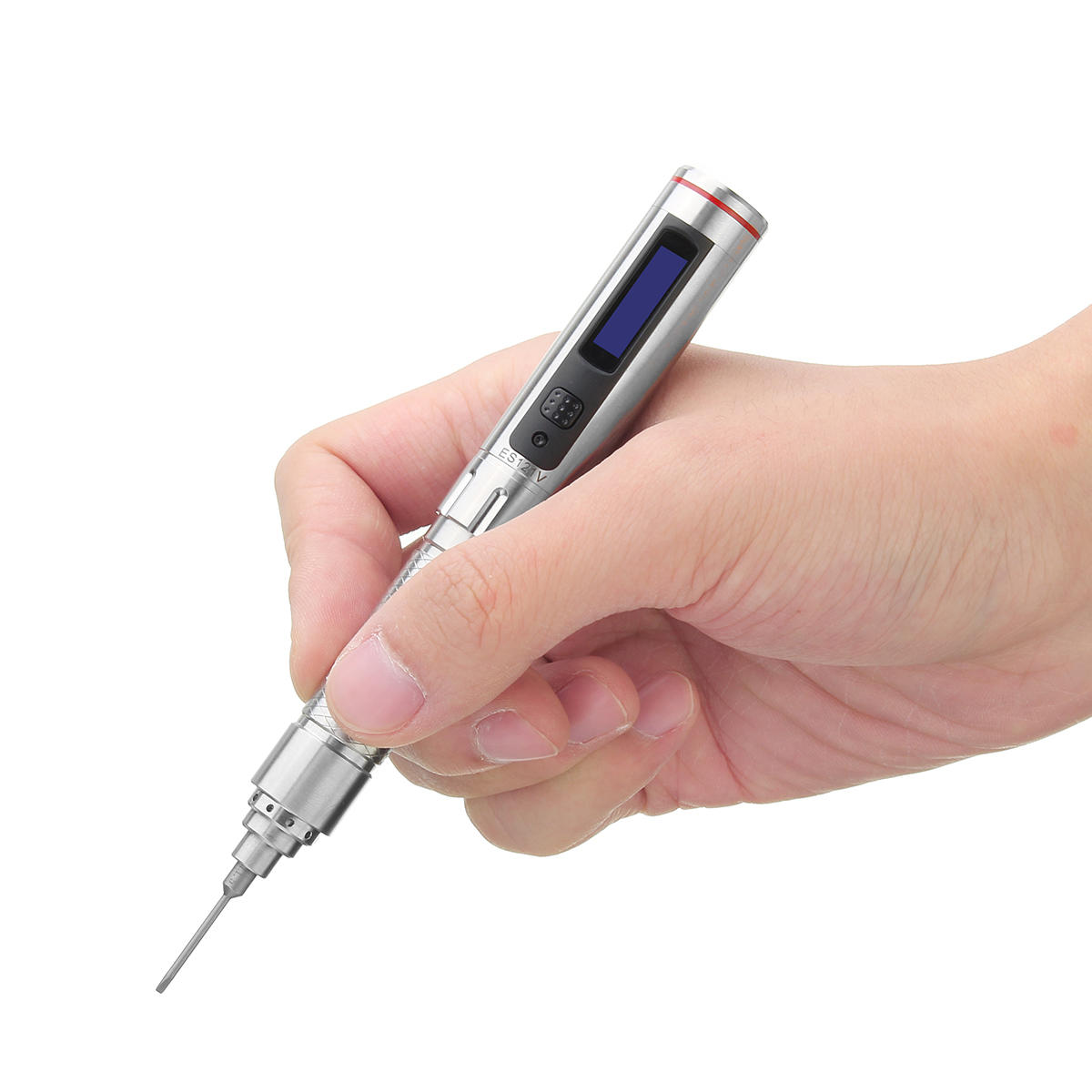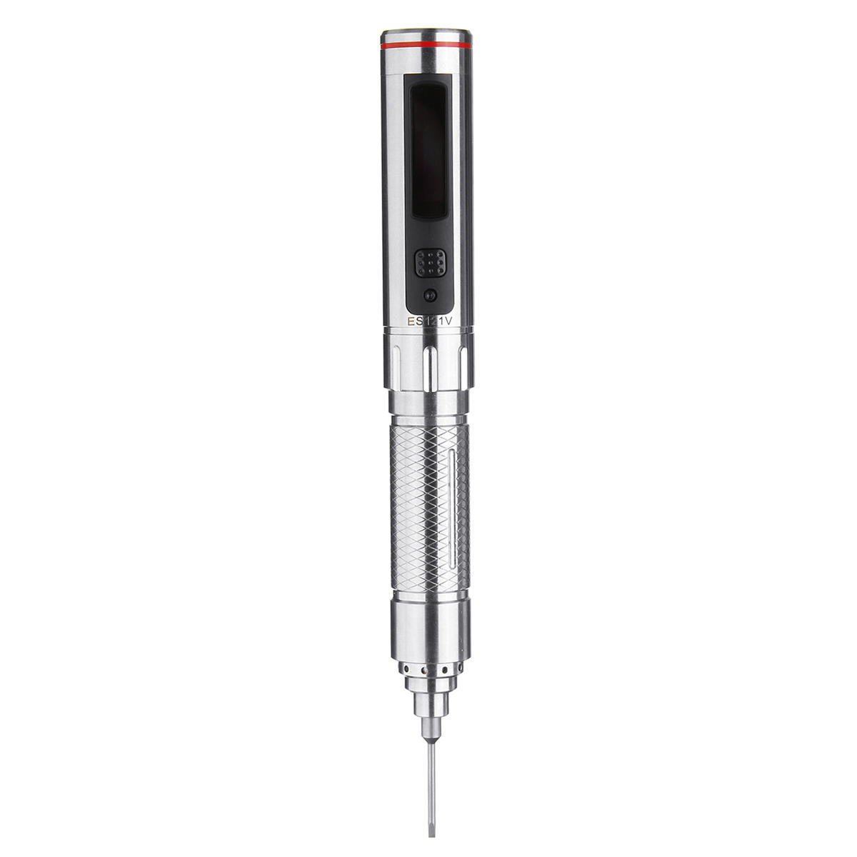 ES121V upgraded version is coming. It is equipped with 1:64 reduction gear motor(ES120 is 1:144) ensure larger rotation speed up to 380 RPM load-free(ES120 is 270RPM) .Slim 304 stainless steel housing with pen shape design,powered by 300mAh lipo battery with 30 minutes working time continuously at full load. It is equipped with SMT32 MCU and 3-axis gyro supporting motion control enable the user to screw or unscrew just by a thumb slight moment, so intelligent and convenient. 16X96mm OLED display the working status and come alone with 6pcs orgingal screwdriver bits 800 Ø4 includes T2/T5/P2/H1.5/PH000/SL1.5 and portable Micro Fiber Storage Bag easy to store and carry, a great helper for electronic reparing projects.