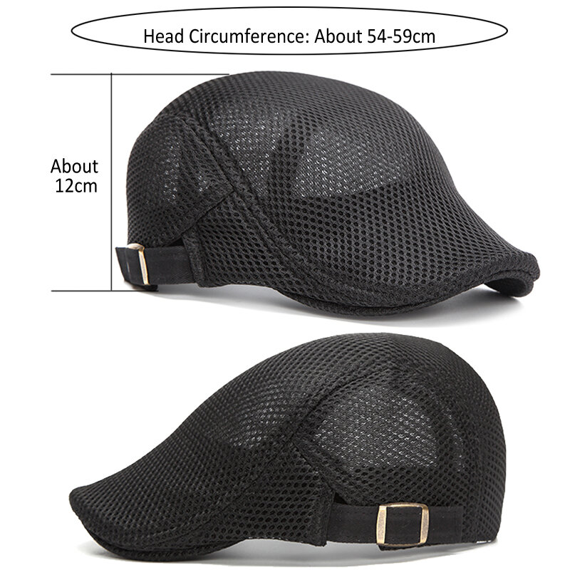 • Men Leisure Mesh Breathable Beret Hat Outdoor Sport Solid Newsboy Cabbie Flat Cap Visor