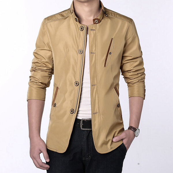 Mens Casual Business Slim Fit Zipper Single-breasted Stand Collar Personality Fashion Jacket COD