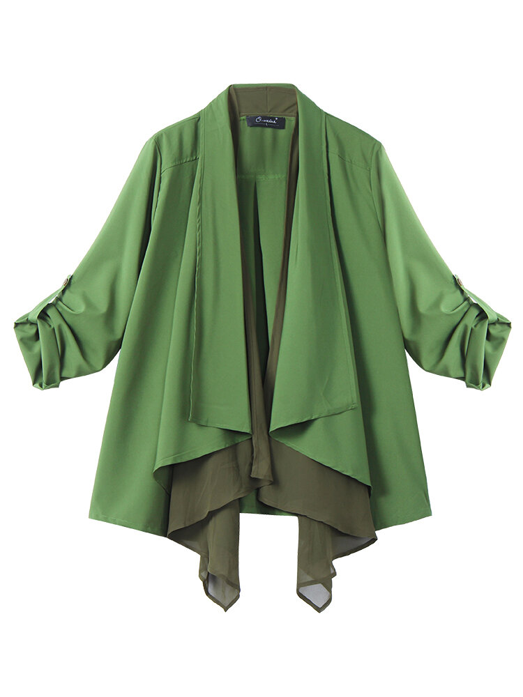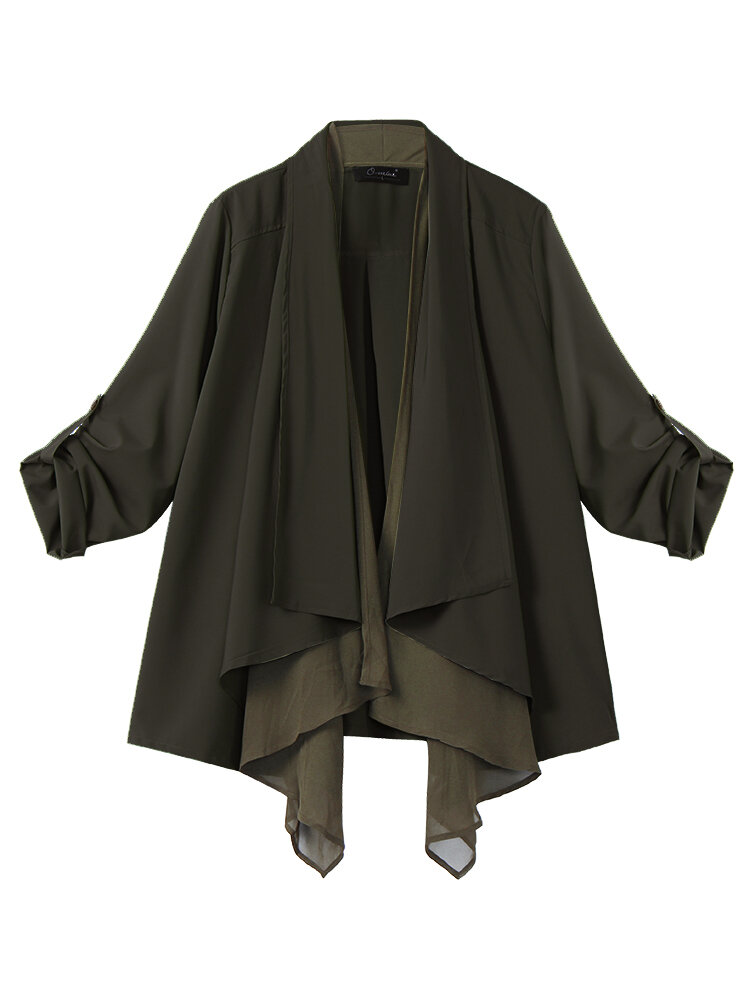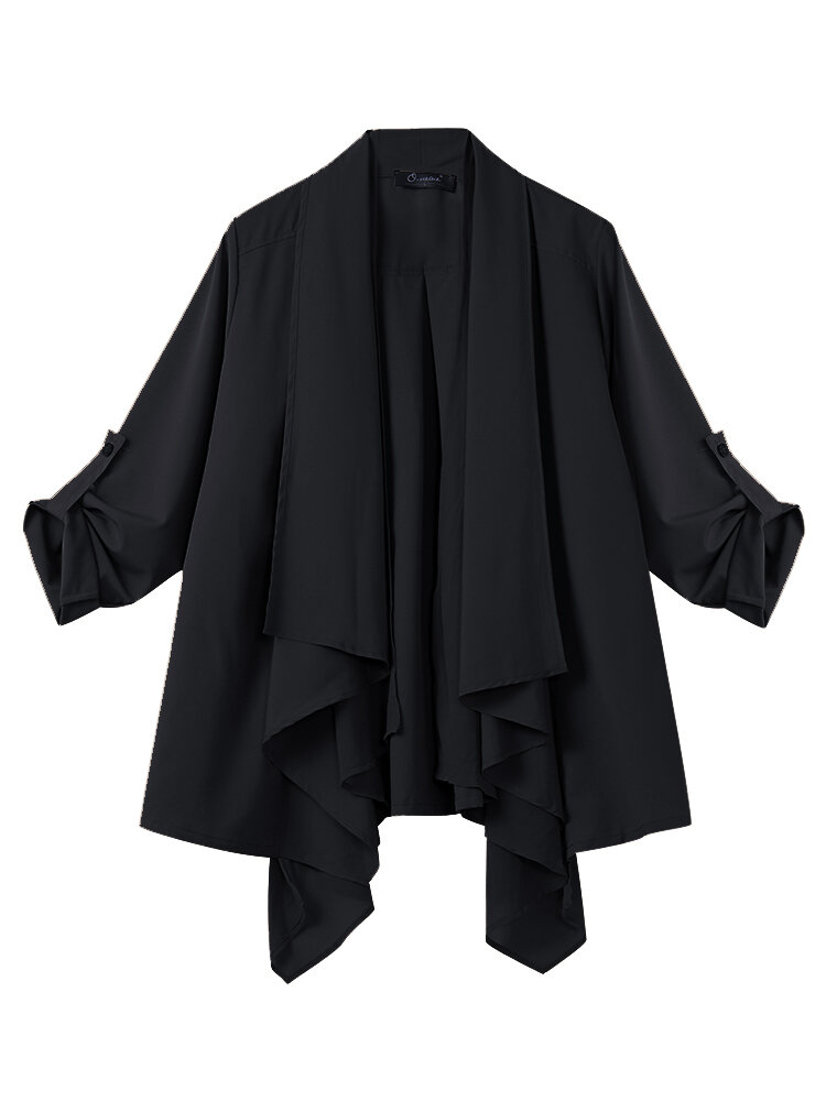 L-5XL Elegant Women Lapel Folding Sleeve Irregular Cardigans COD