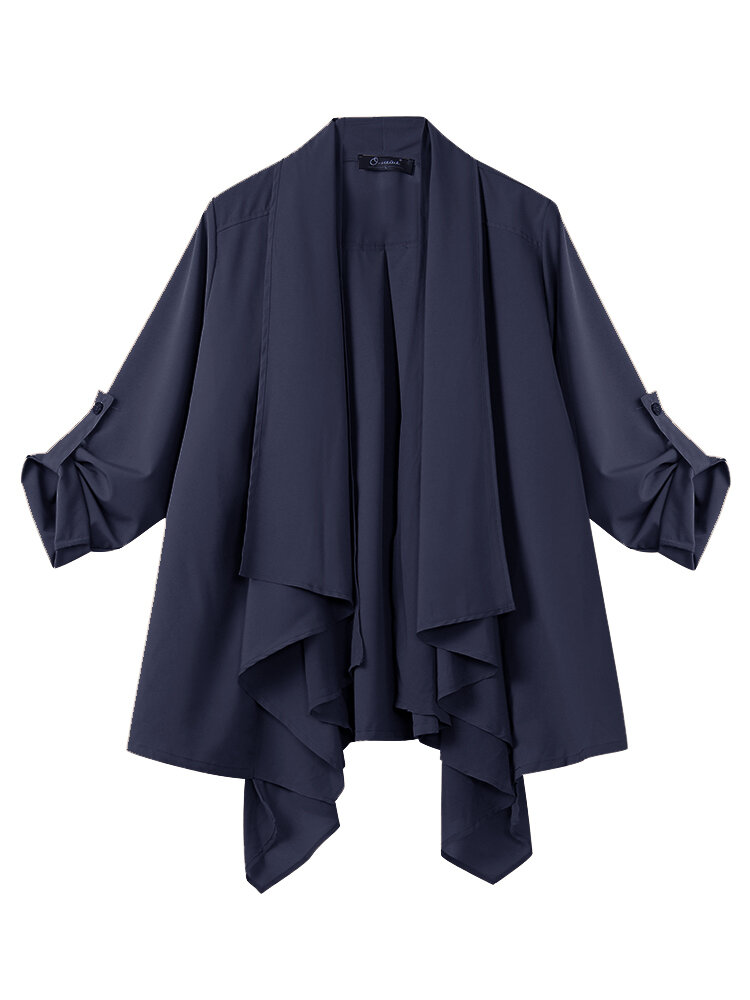 • L-5XL Elegant Women Lapel Folding Sleeve Irregular Cardigans