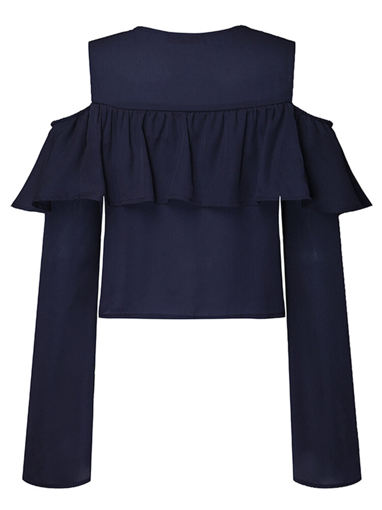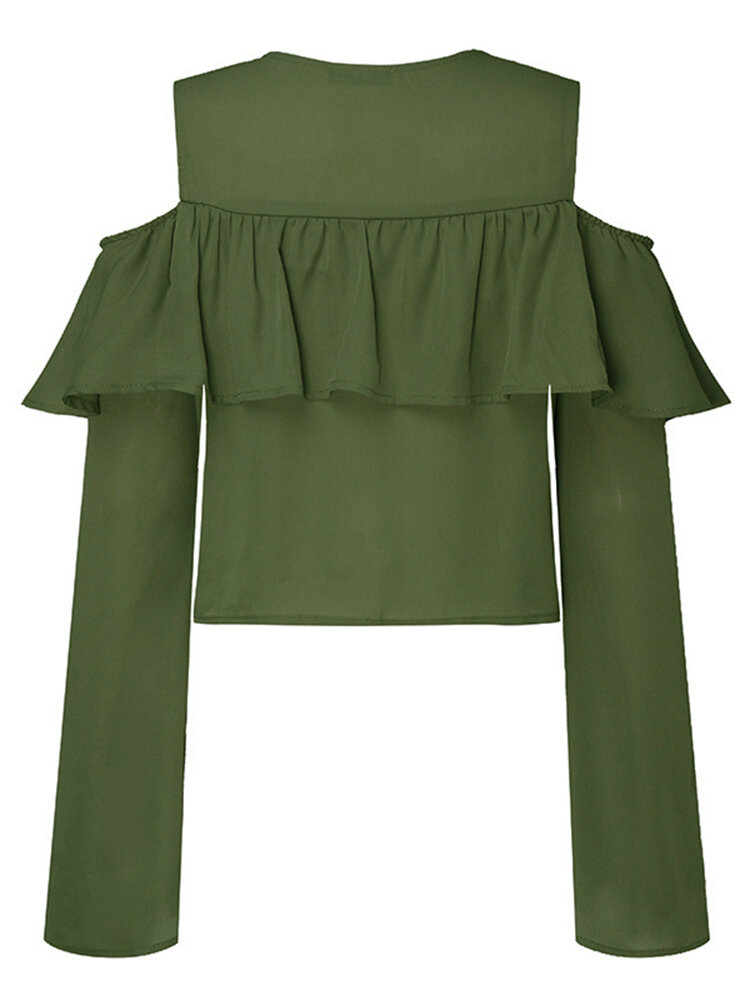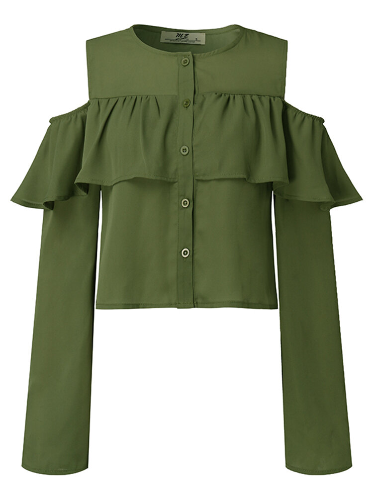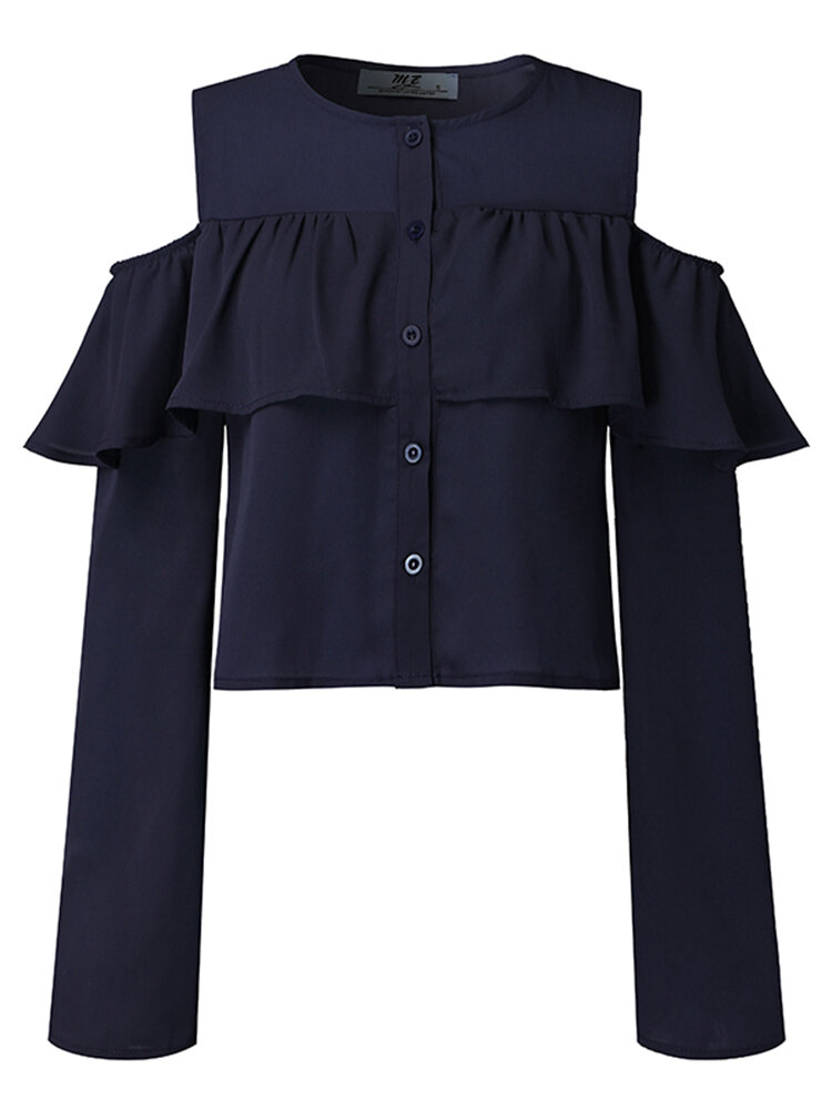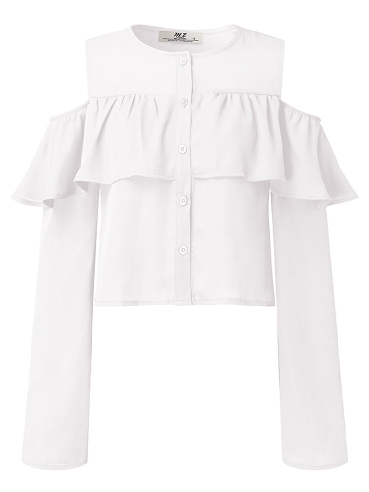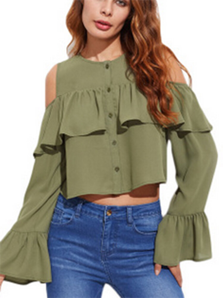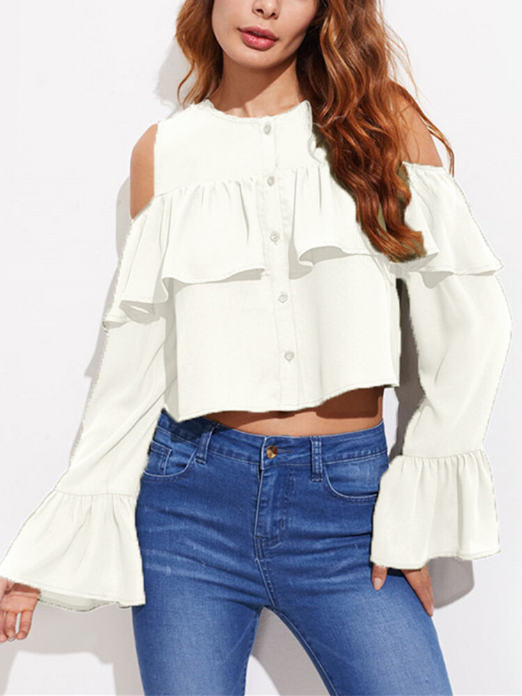 • Plus Size Sexy Women Strapless Button Bell Sleeve Blouse