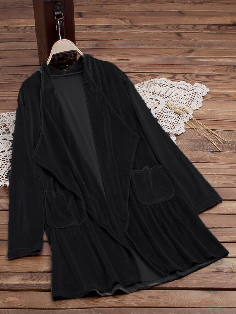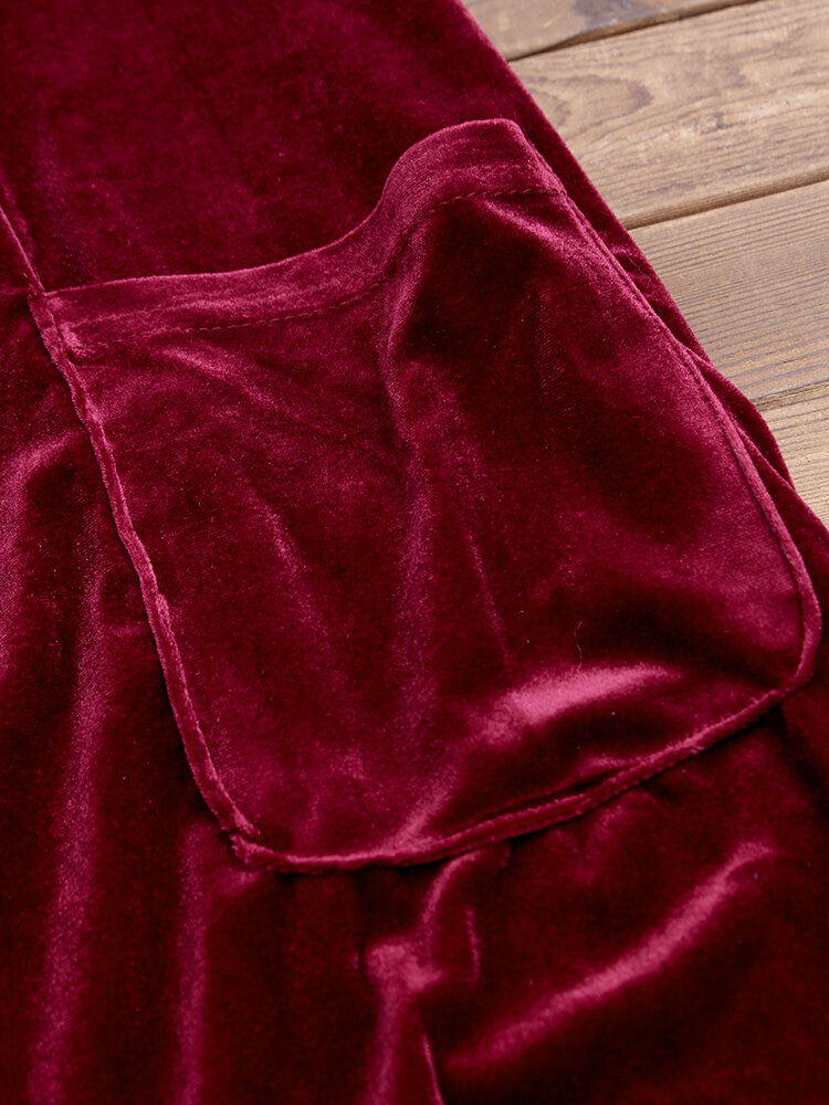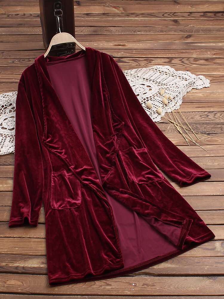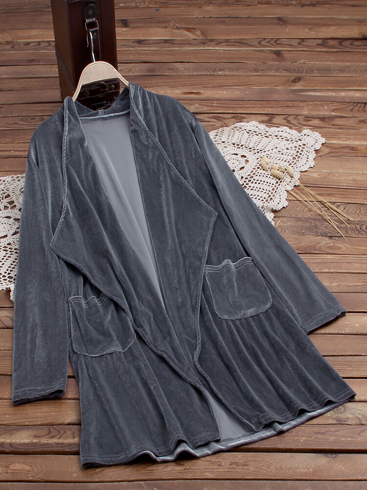 • Pure Color Turn-down Collar Long Sleeve Velvet Trench Coats