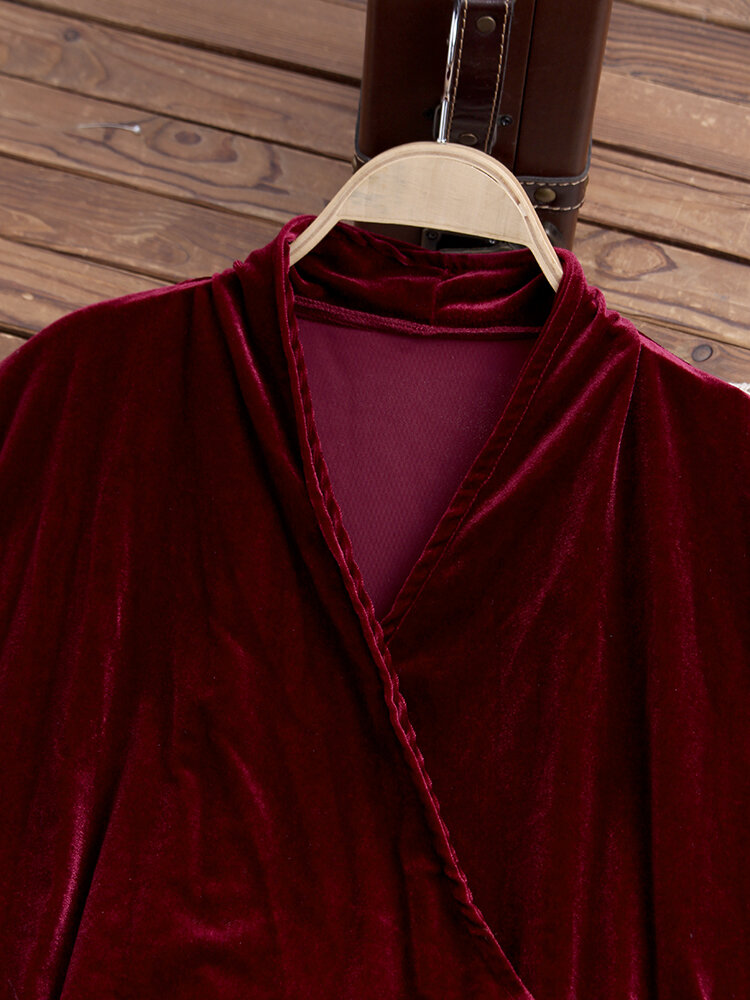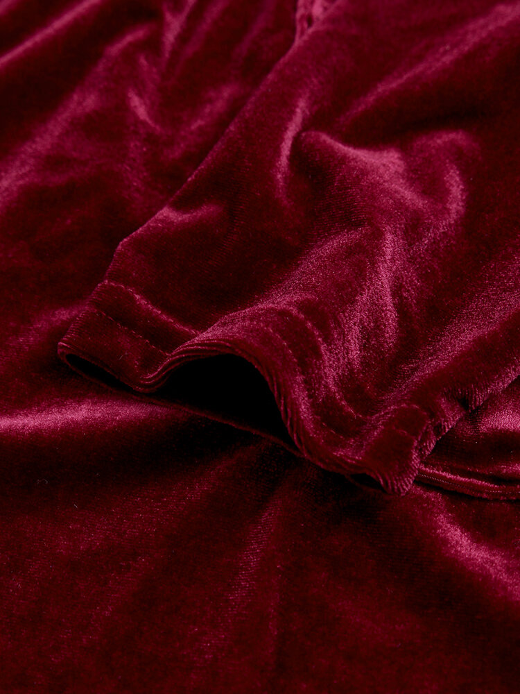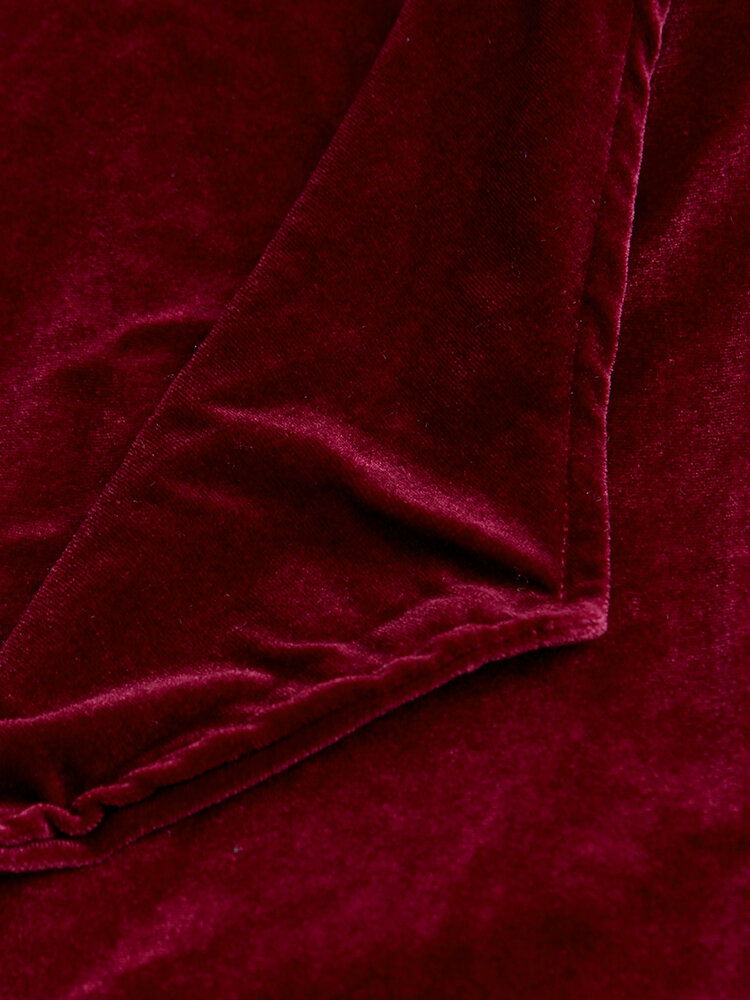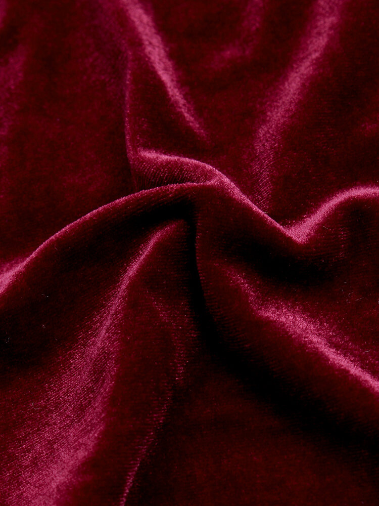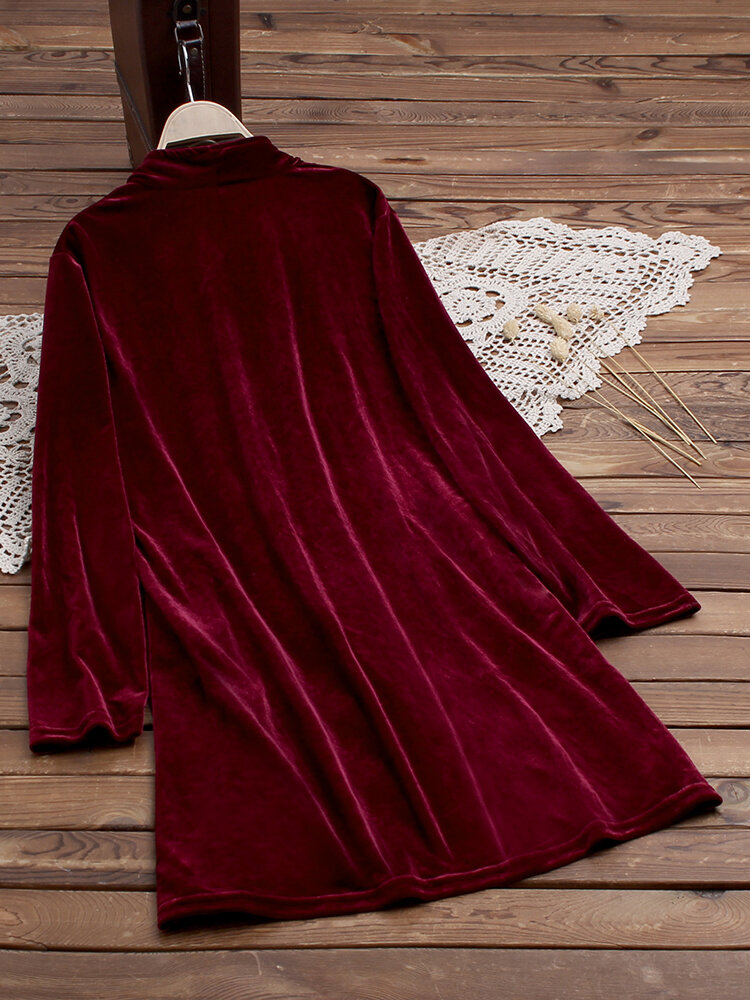 • Pure Color Turn-down Collar Long Sleeve Velvet Trench Coats