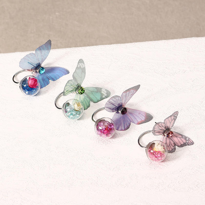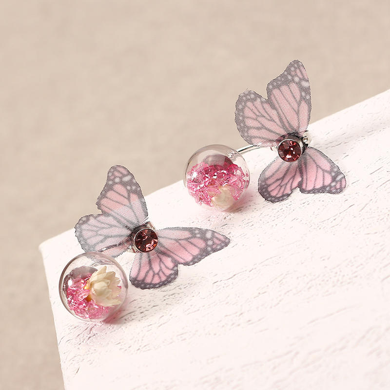 Trendy Crystal Glass Ball Flower Butterfly Fabric Earrings for Women COD
