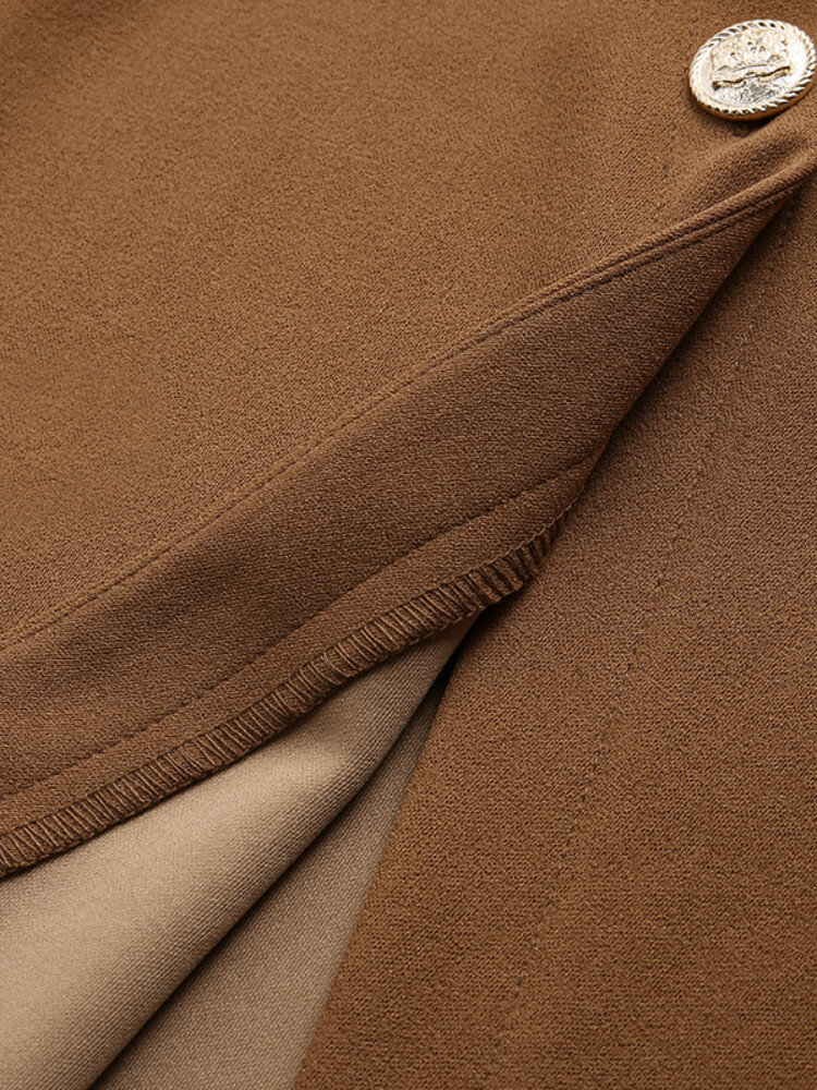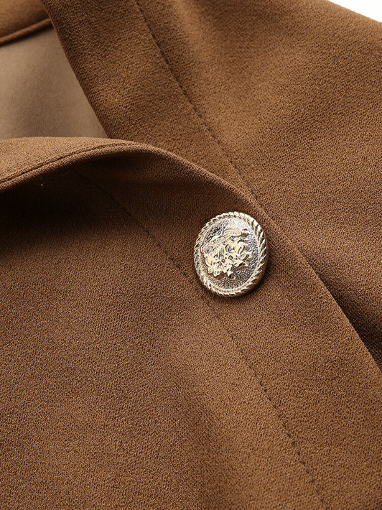 • Women British Style Solid Color Button Loose Elegant Cloak Coats