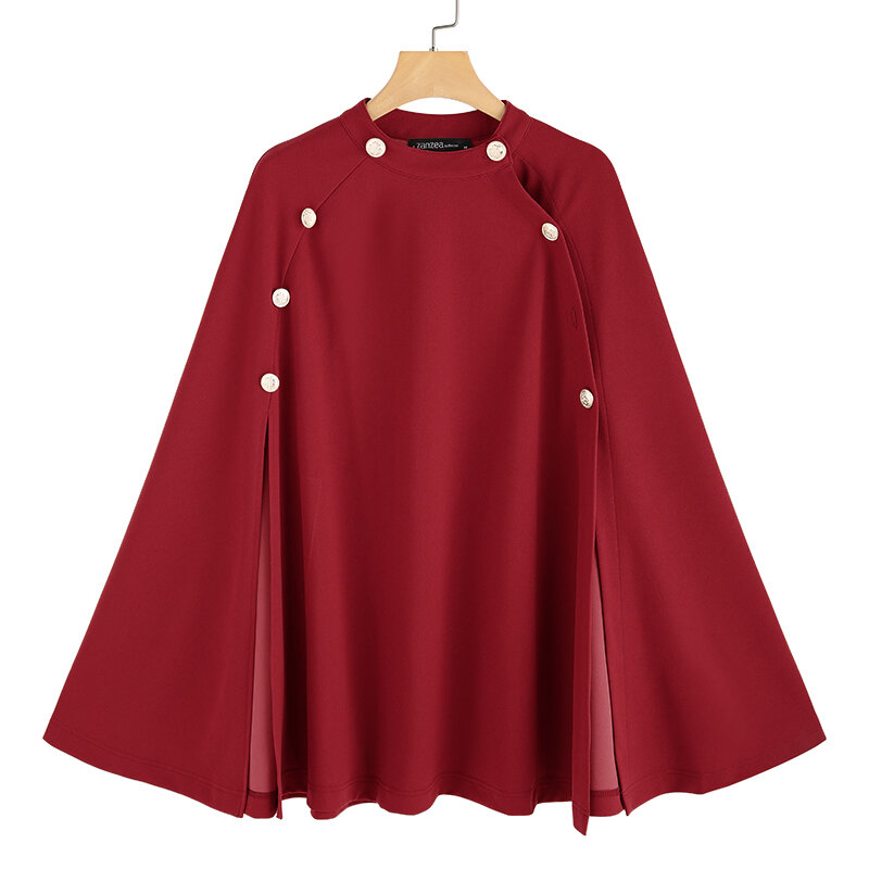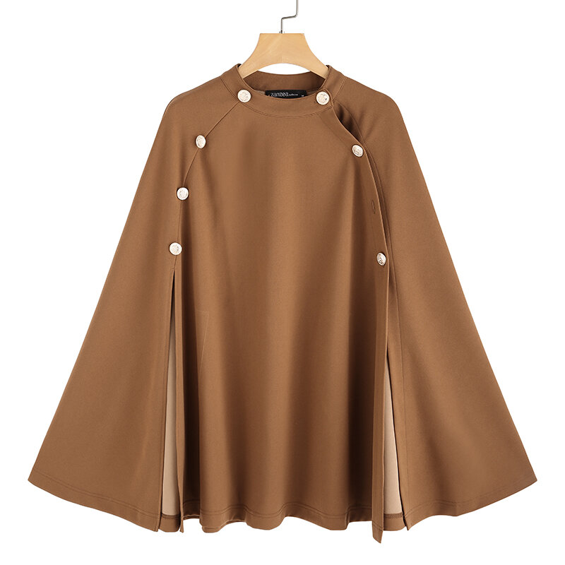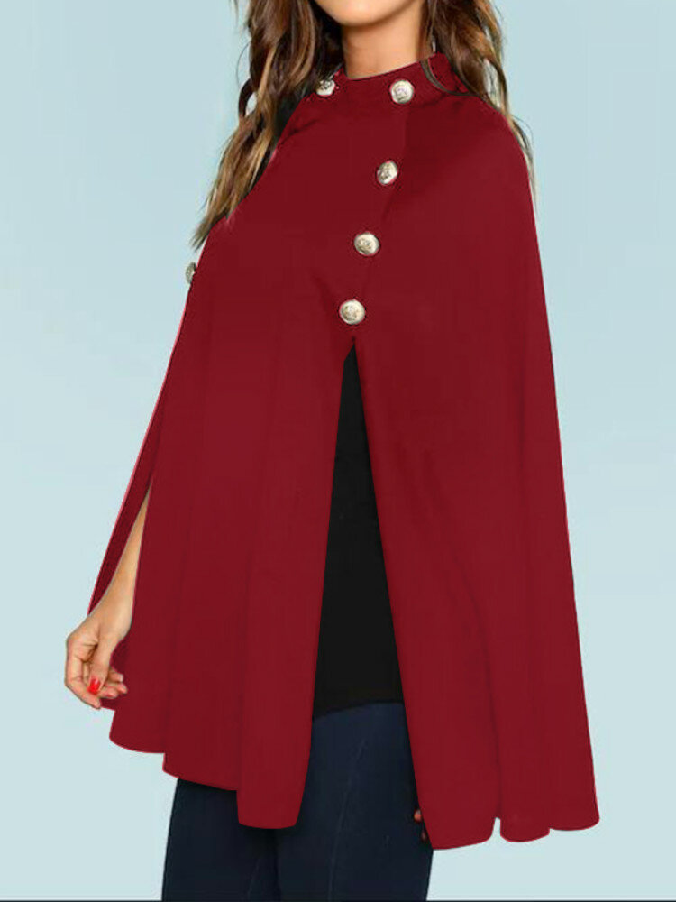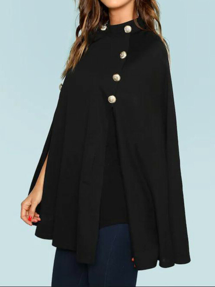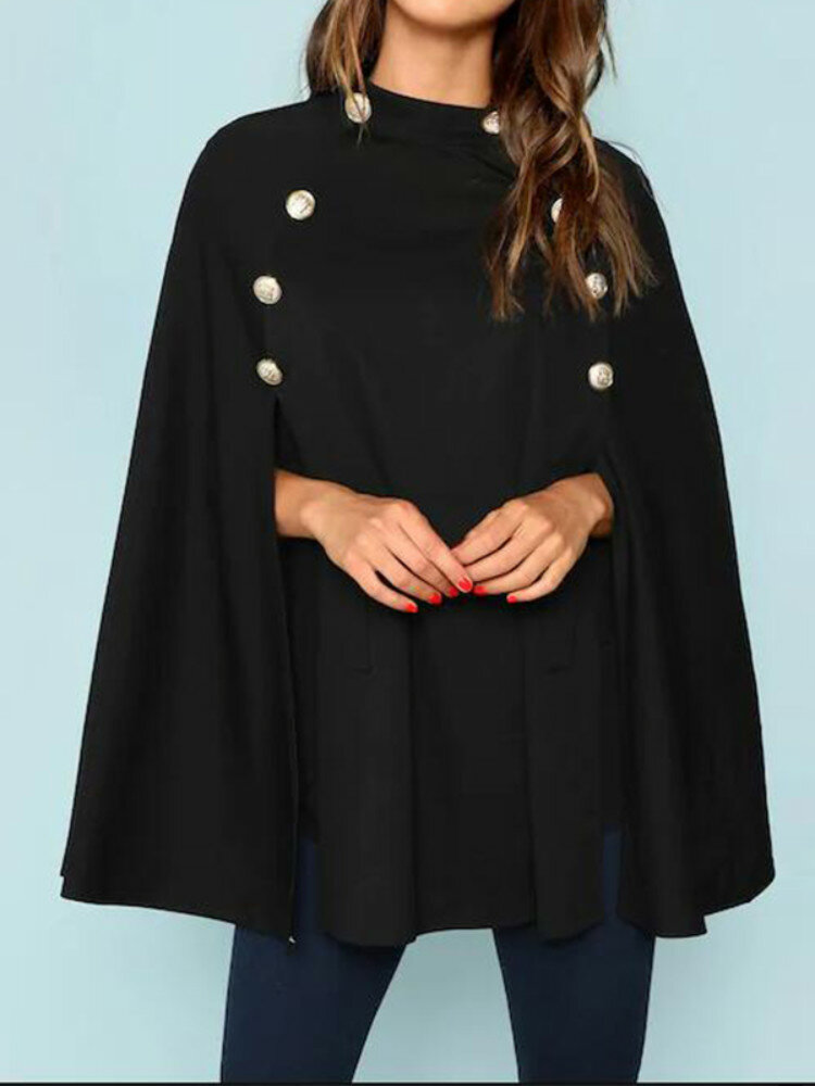 Women British Style Solid Color Button Loose Elegant Cloak Coats