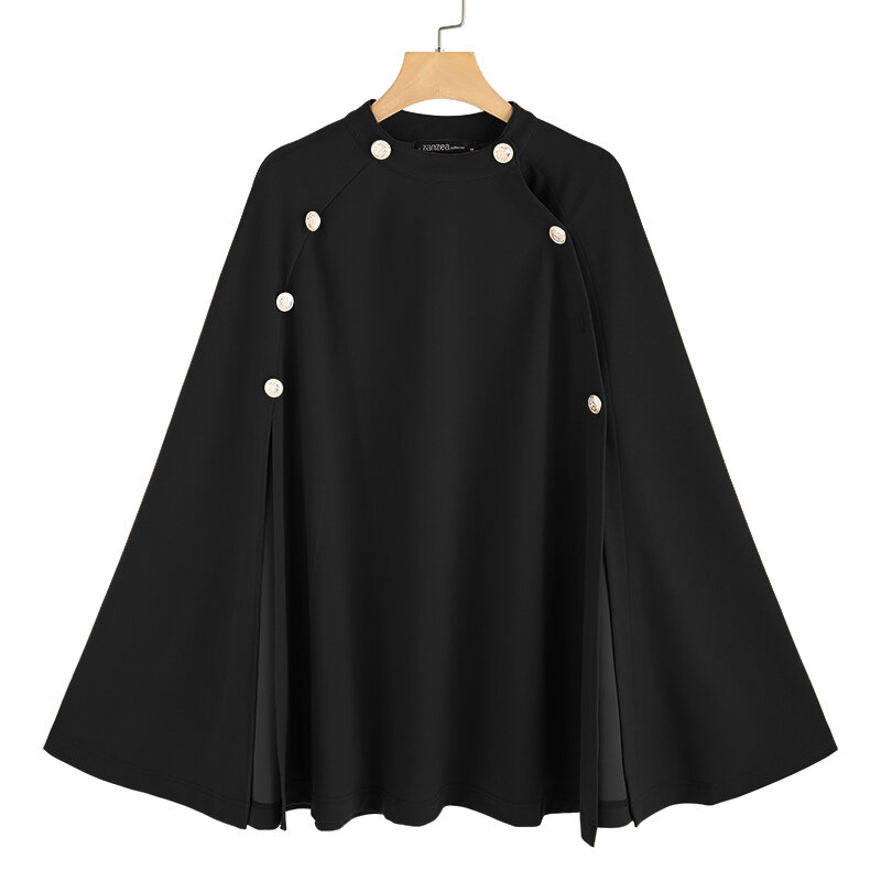 Women British Style Solid Color Button Loose Elegant Cloak Coats COD