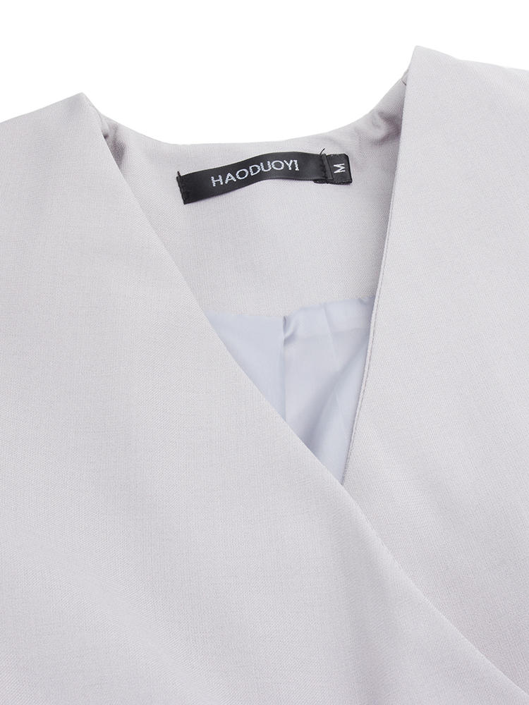 Women Elegant Brief V-neck No Button Pocket OL Work Short Blazer COD