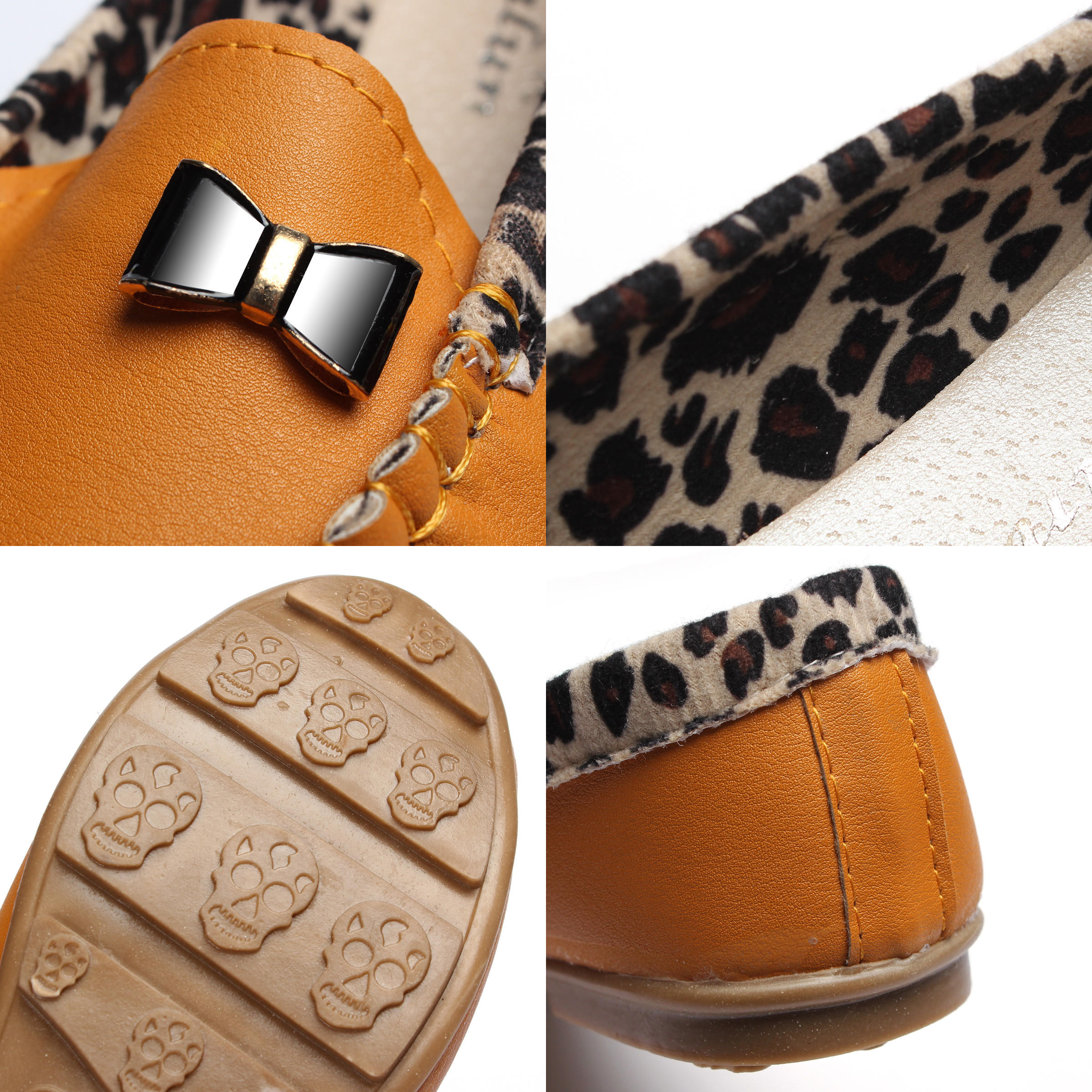 Women Fashion Leopard Casual Loafer Slipper Soft Leather Single Shoes