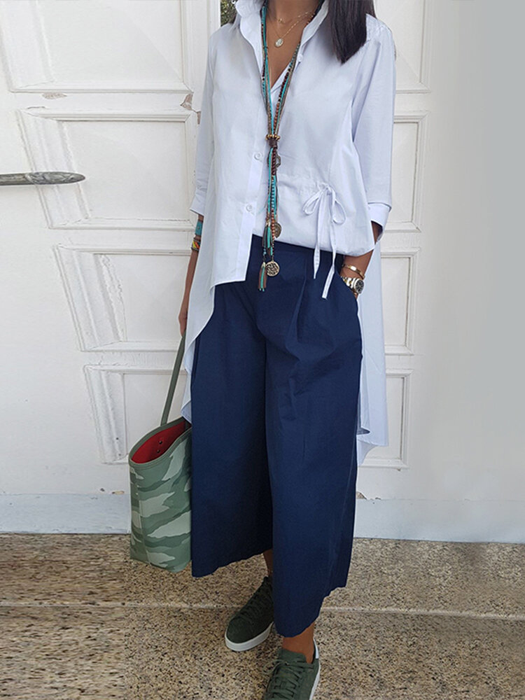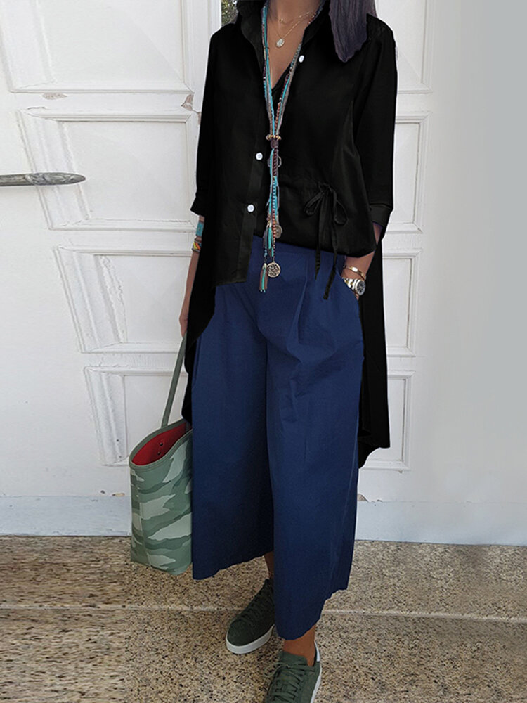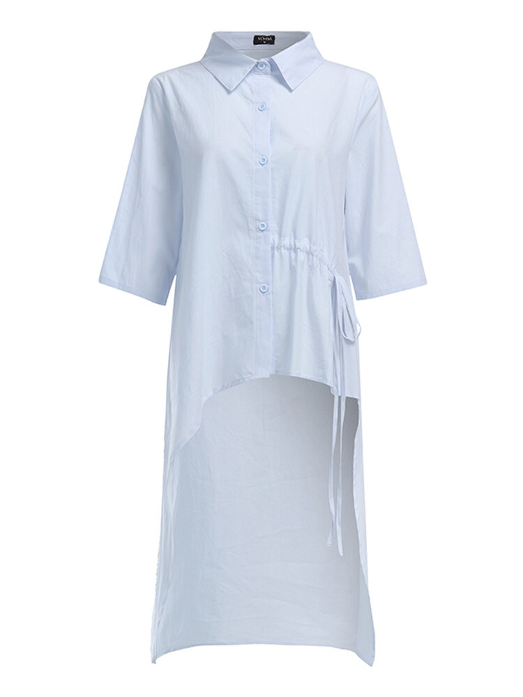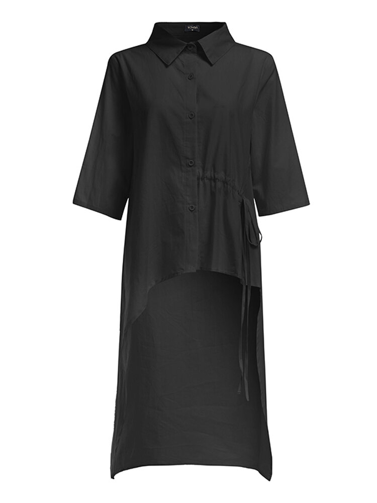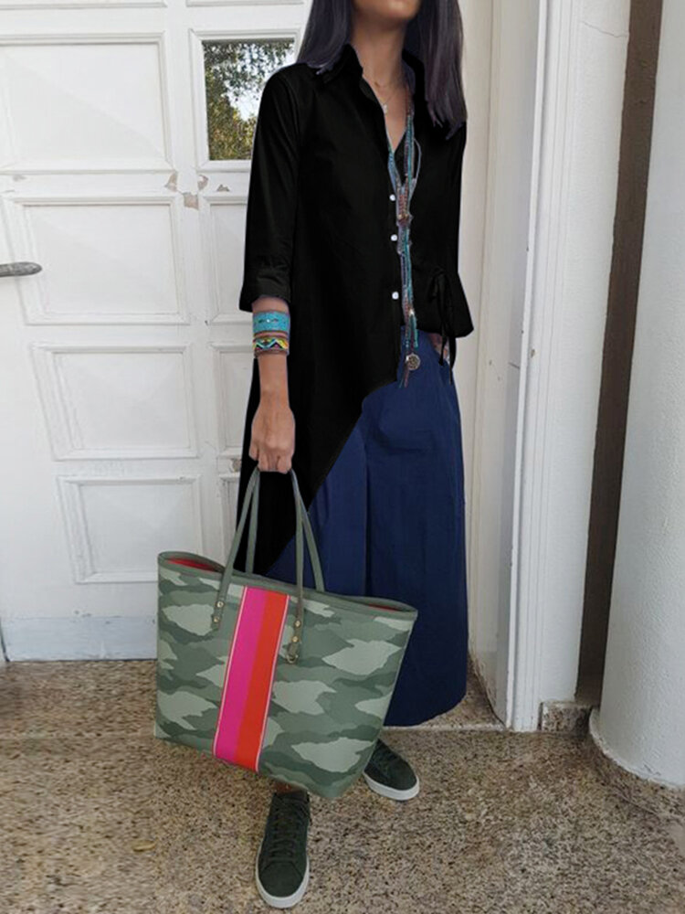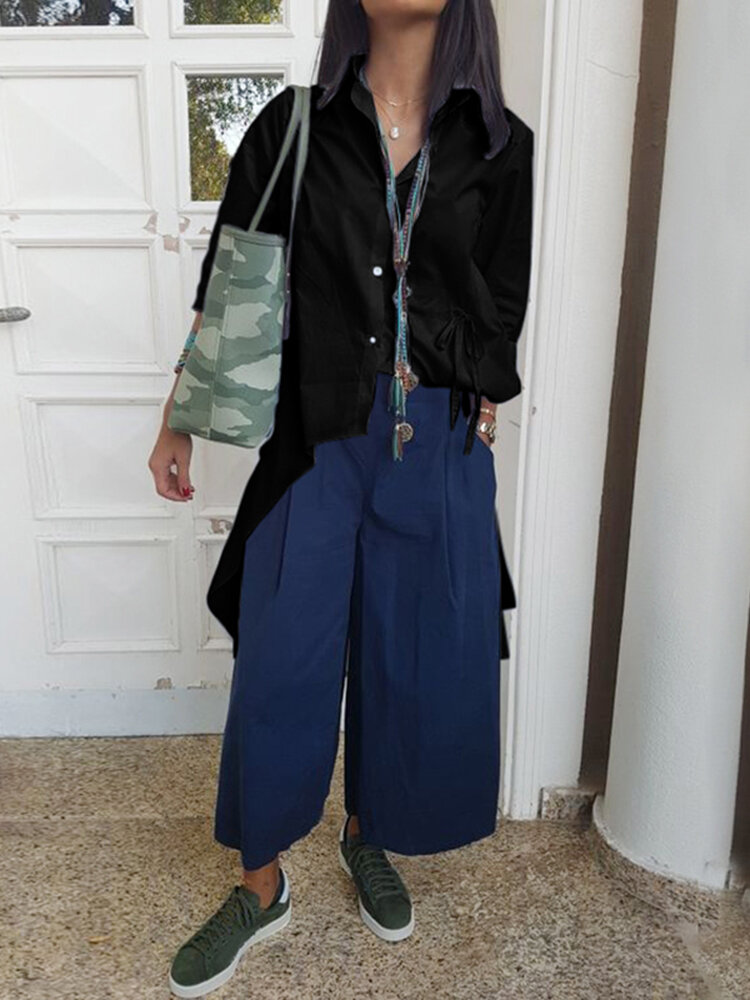 • Women Long Sleeve High Low Casual Lapel Buttons Down Shirt Blouse