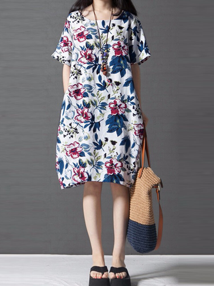 Vintage Women Loose Printing Short Sleeve Dress