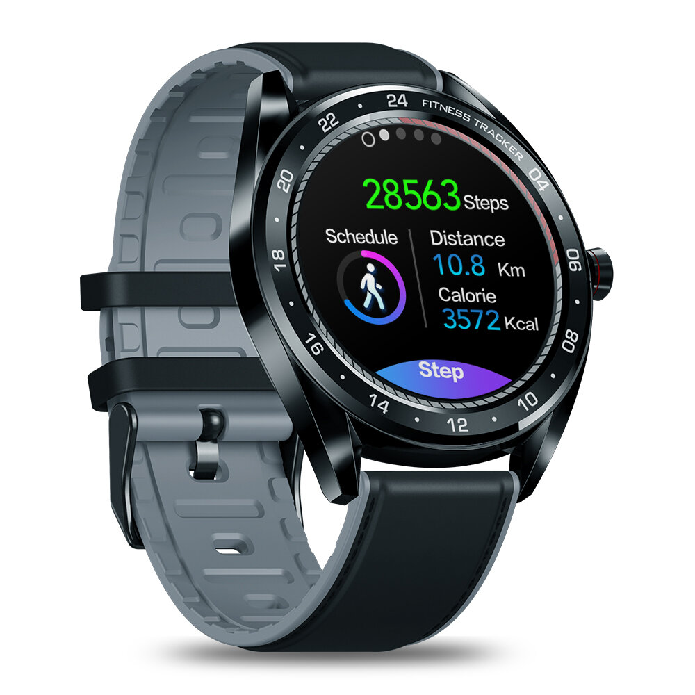 • Zeblaze NEO 1.3inch Full-round Touch Screen Blood Pressure Heart Rate Monitor Female Physiological Check Countdown Stopwatch Silicone+Leather Band Smart Watch